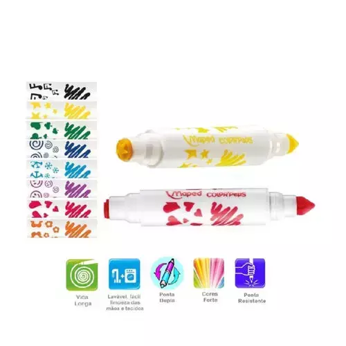 Pacote com 8 canetinhas com ponta dupla: de feltro para coloração de carimbo. Ponta de feltro: uma ponta grande para colorir, uma ponta de carimbo para adicionar padrões. Tinta ultra lavável na maioria dos tecidos e pele com água e sabão.