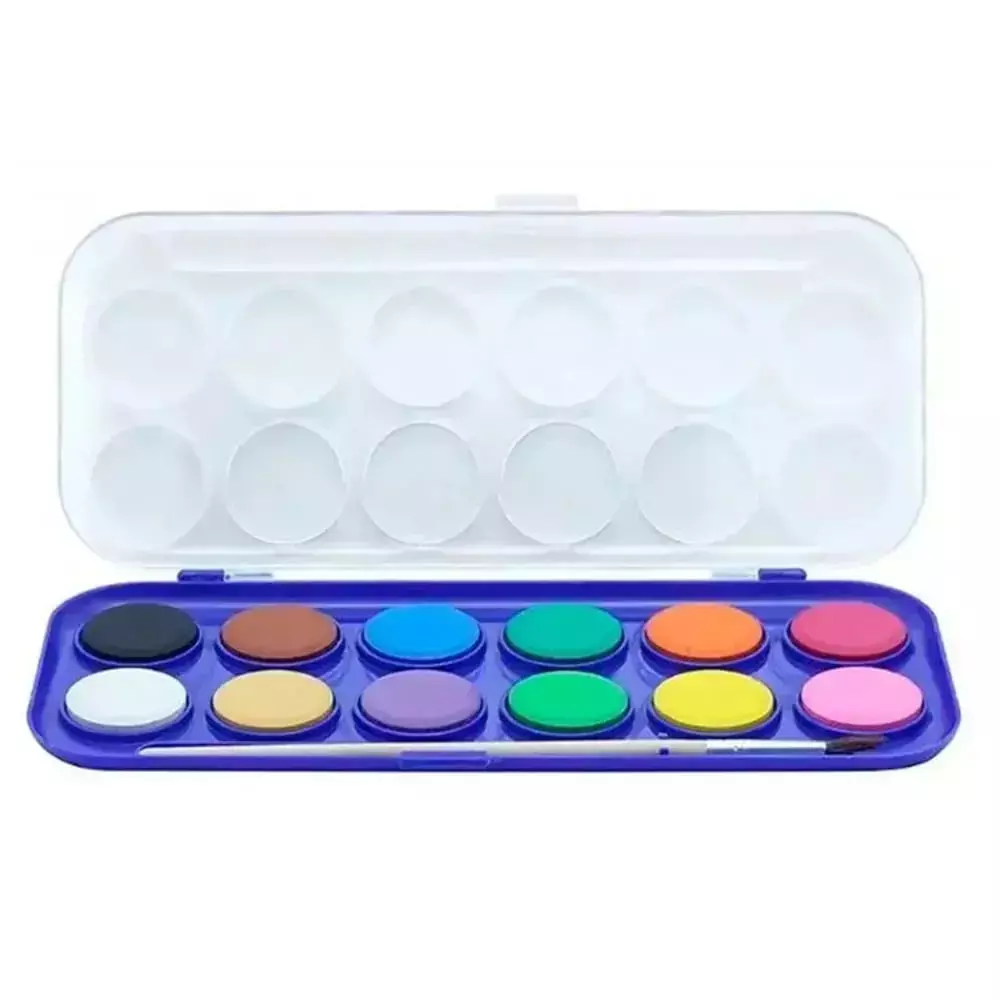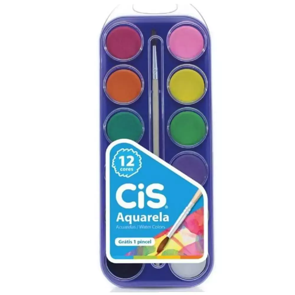 Tinta Aquarela Em Pastilha Estojo Com 12 Cores Cis Pincel Promoção Barato \n \n  \n \nOs desenhos vão ficar incríveis pintando com o estojo aquarela CiS! As pastilhas de tinta solúveis em água vem em um estojo acrílico junto com um pincel de , para você ter tudo à mão na hora da arte! \n \n  \n \nContém: 1 estojo acrílico com 12 pastilhas coloridas aquarela e 1 pincel. \n \nMaterial: Resinas termoplásticas, corantes orgânicos e solventes. \n \nDimensões aproximadas: 20x9x1cm \n \nNão Tóxico e Lavável \n \nNão recomendado para menores de 3 anos \n \nCor: Colorida \n \n  \n \nINMETRO: OCP 0061 Registro: 001 194/2017 INNAC